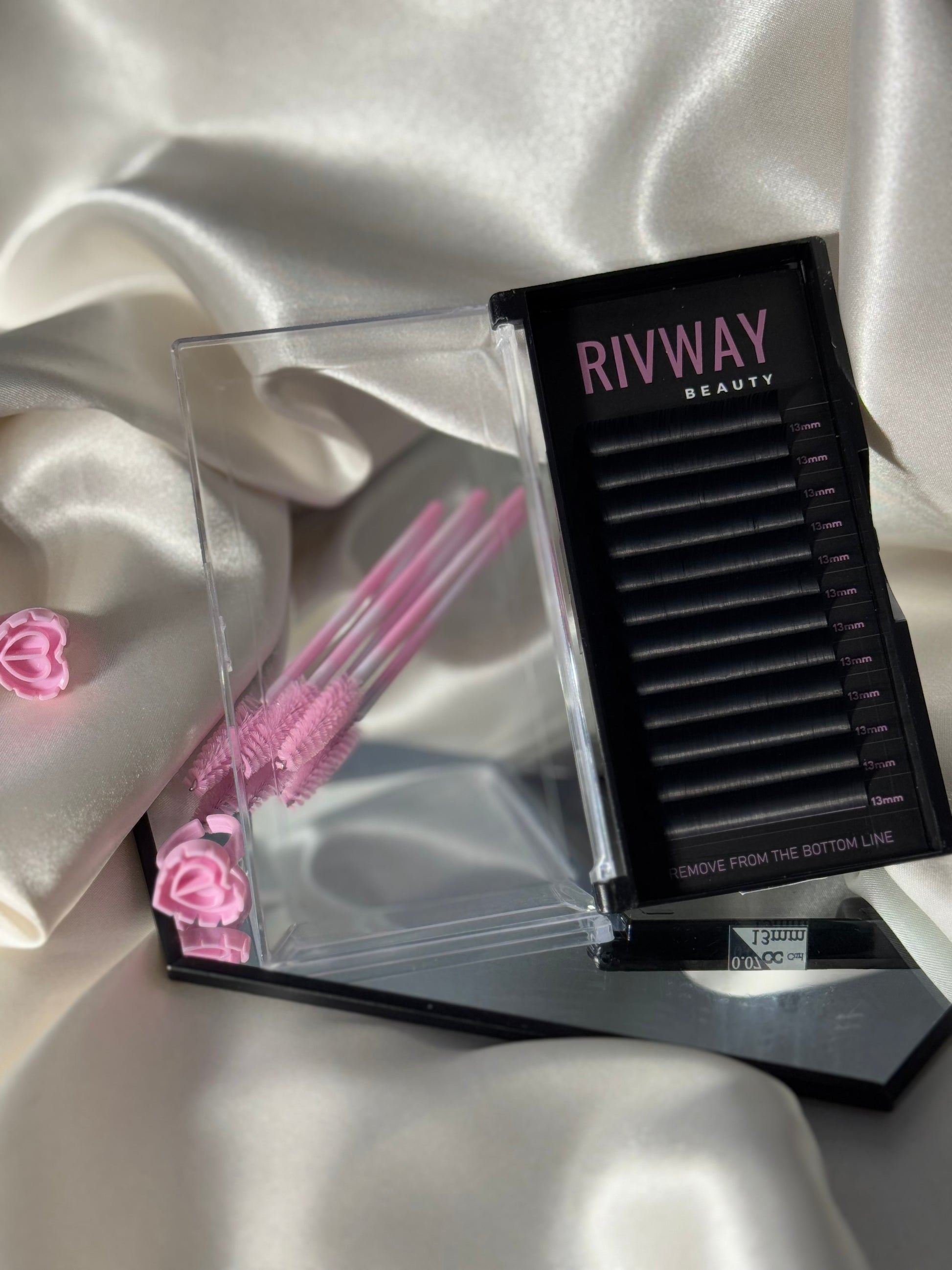 Rivway beauty classic lashes are a fierce set of lashes made from cashmere faux mink. We personally go through each tray to catch any imperfections in the product. We offer a wide variety of lengths, and curls and are only going to expand more! Each tray includes 12 rows of beautiful, soft, very light weight and durable lashes.